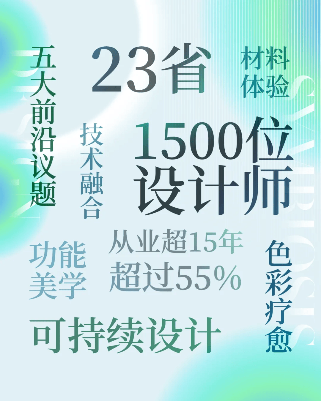 这份历时三个月完成的《2026中国家居设计趋势调研报告》,覆盖全国超23个省份,回收有效问卷1500份。值得关注的是,受访设计师中从业15年以上者占比高达55%,8-15年者占25%—以资深从业者为主体的样本构成,确保了洞察的深度与行业代表性。报告围绕可持续设计、功能美学、材料体验、色彩疗愈、技术融合等五大前沿议题,凝练出行业面向未来的五大共识。