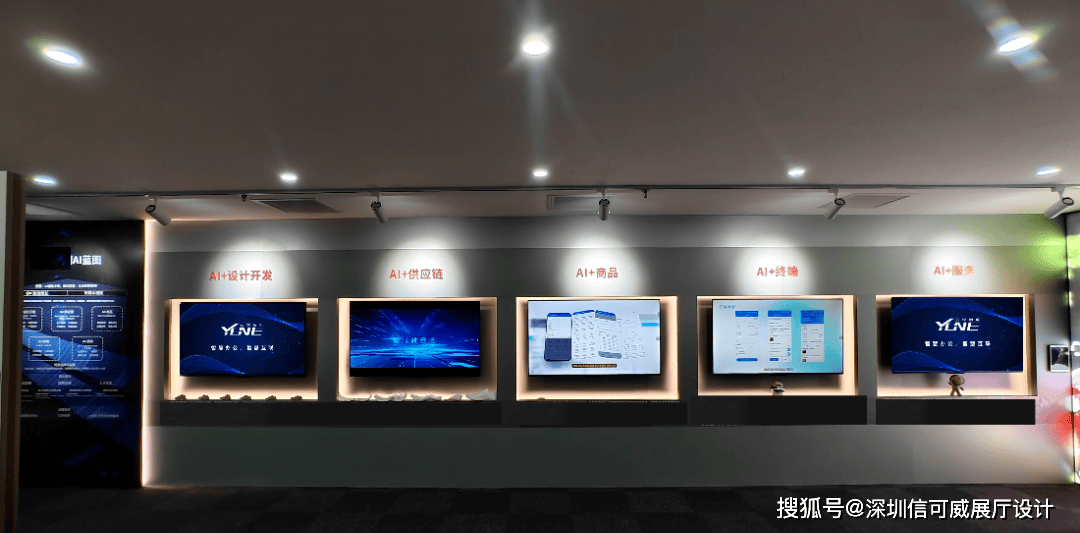 配置5块65英寸4K高清显示屏,分别聚焦五大核心内容模块,全方位展现AI在企业全链路的应用价值: